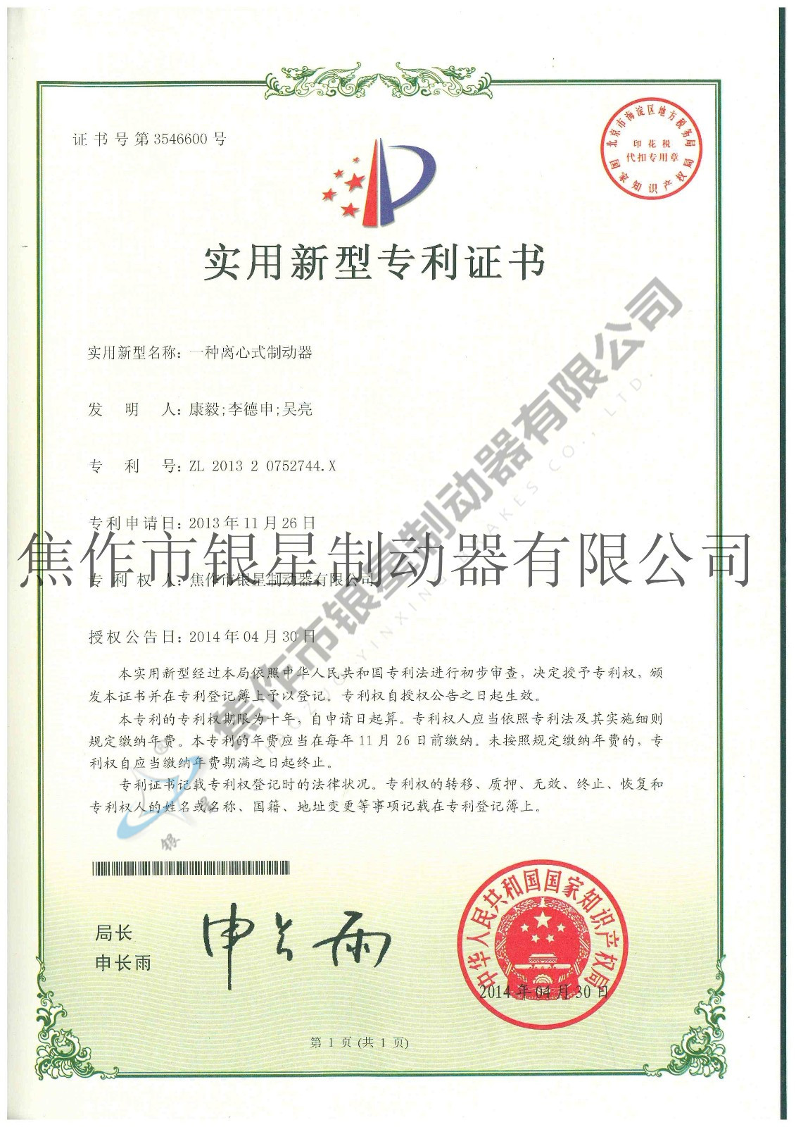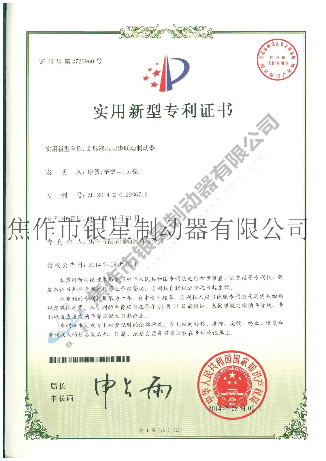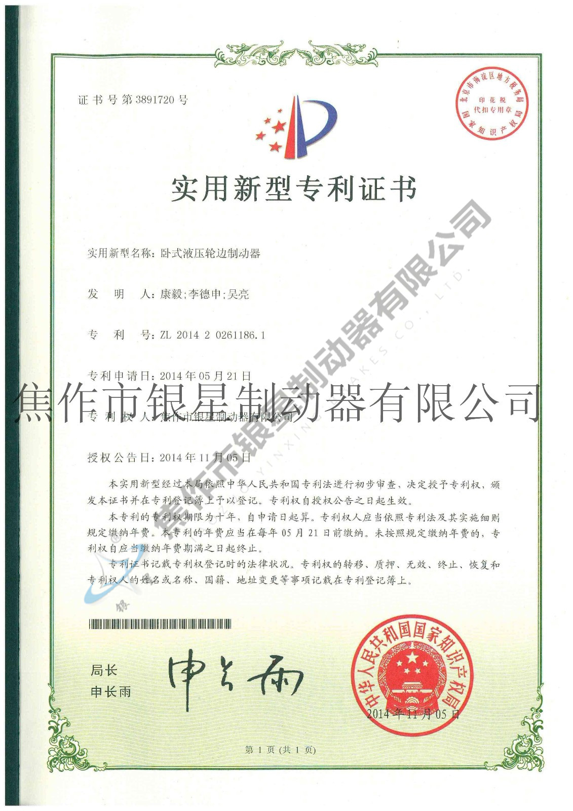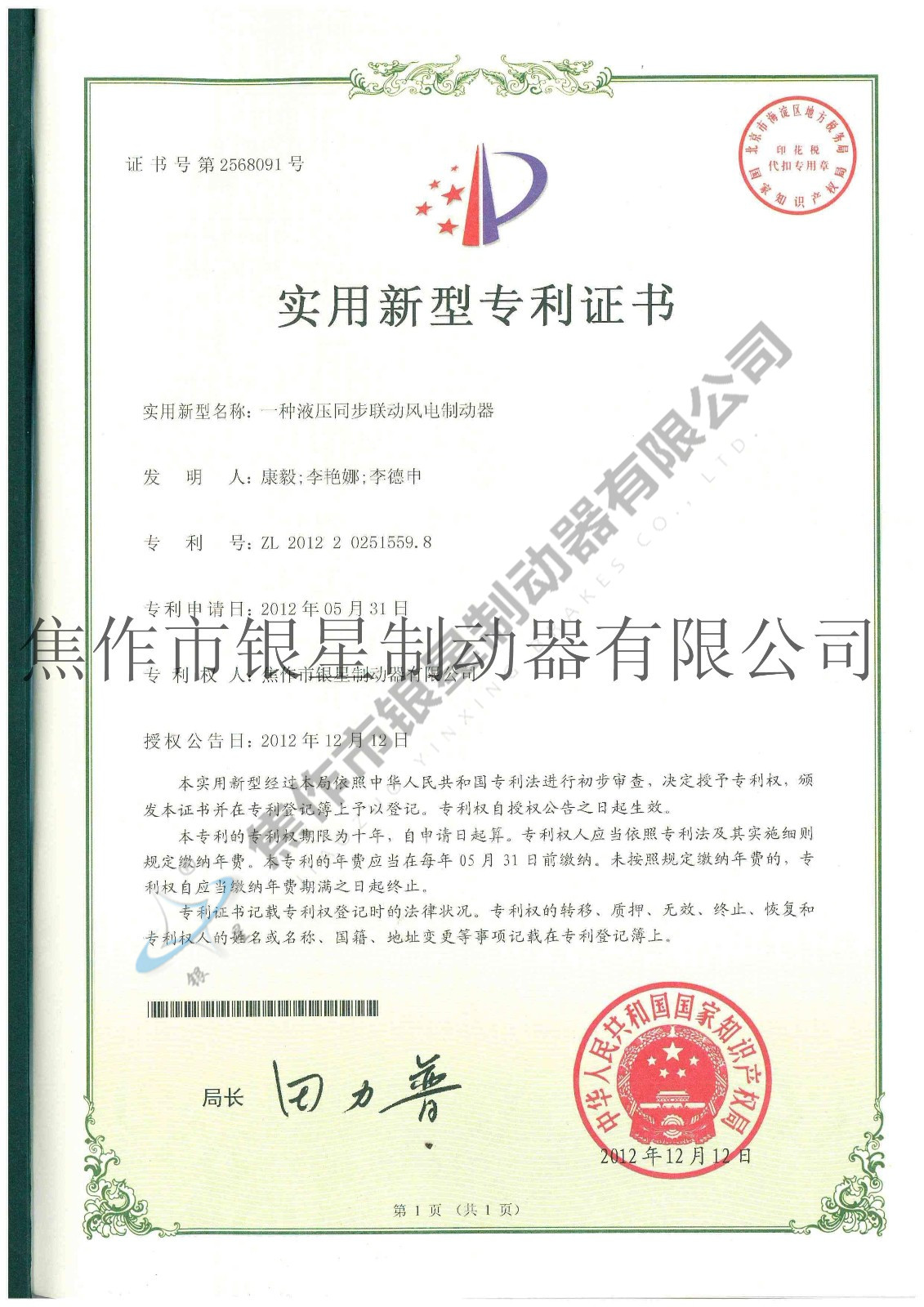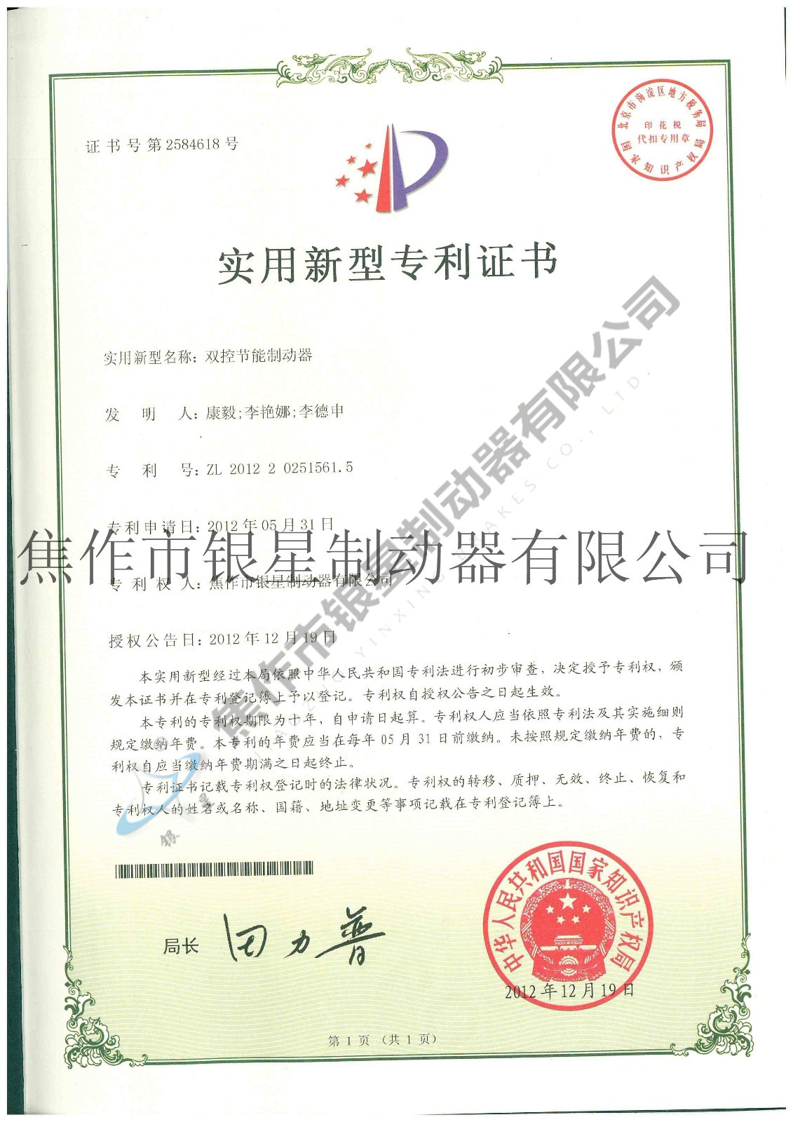 Patent certificateCurrent Position:Home > Honor > Patent certificate