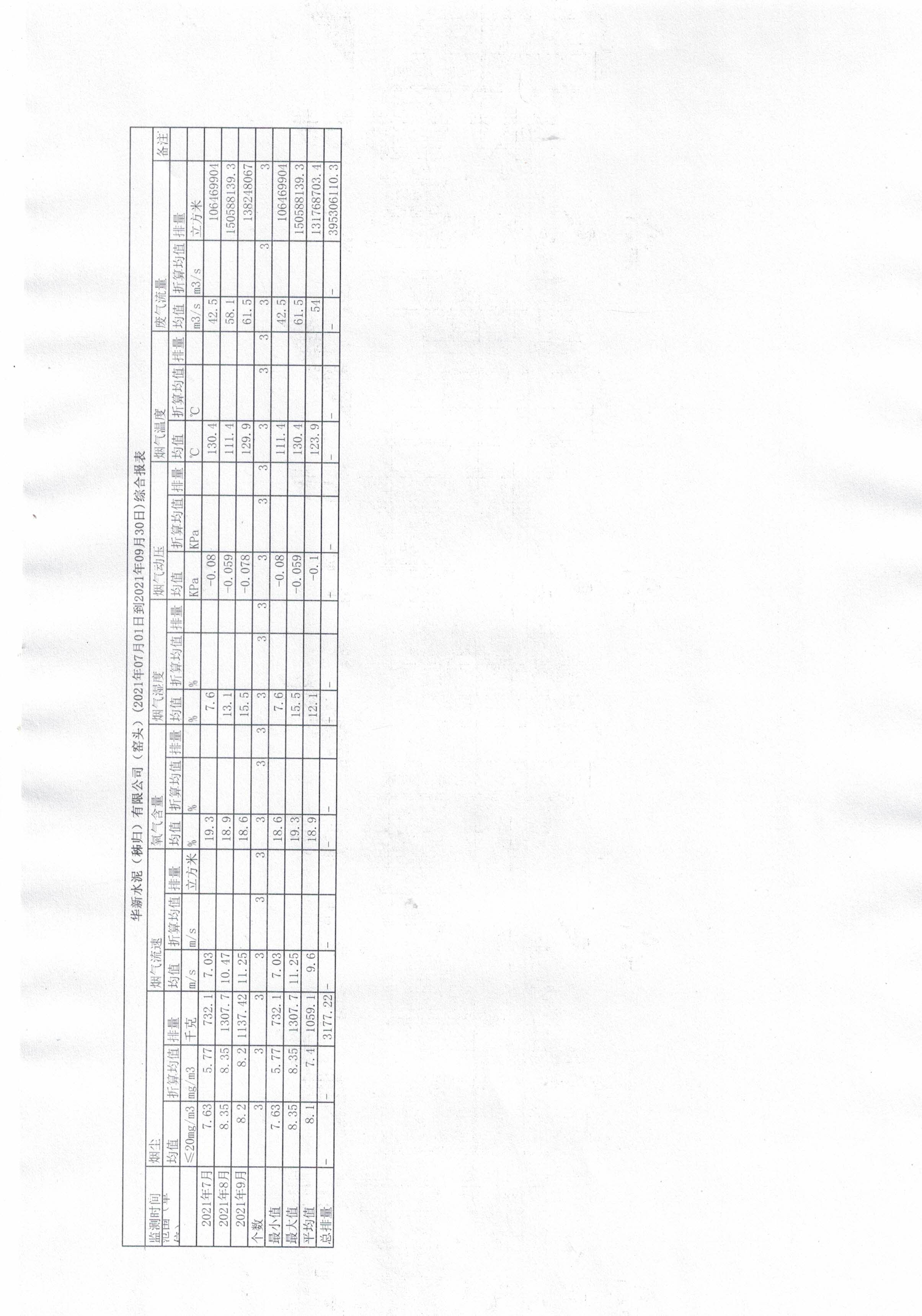 7.華新水泥(秭歸)有限公司-窯尾(2021年07月01日到2021年09月30日)綜合報(bào)表