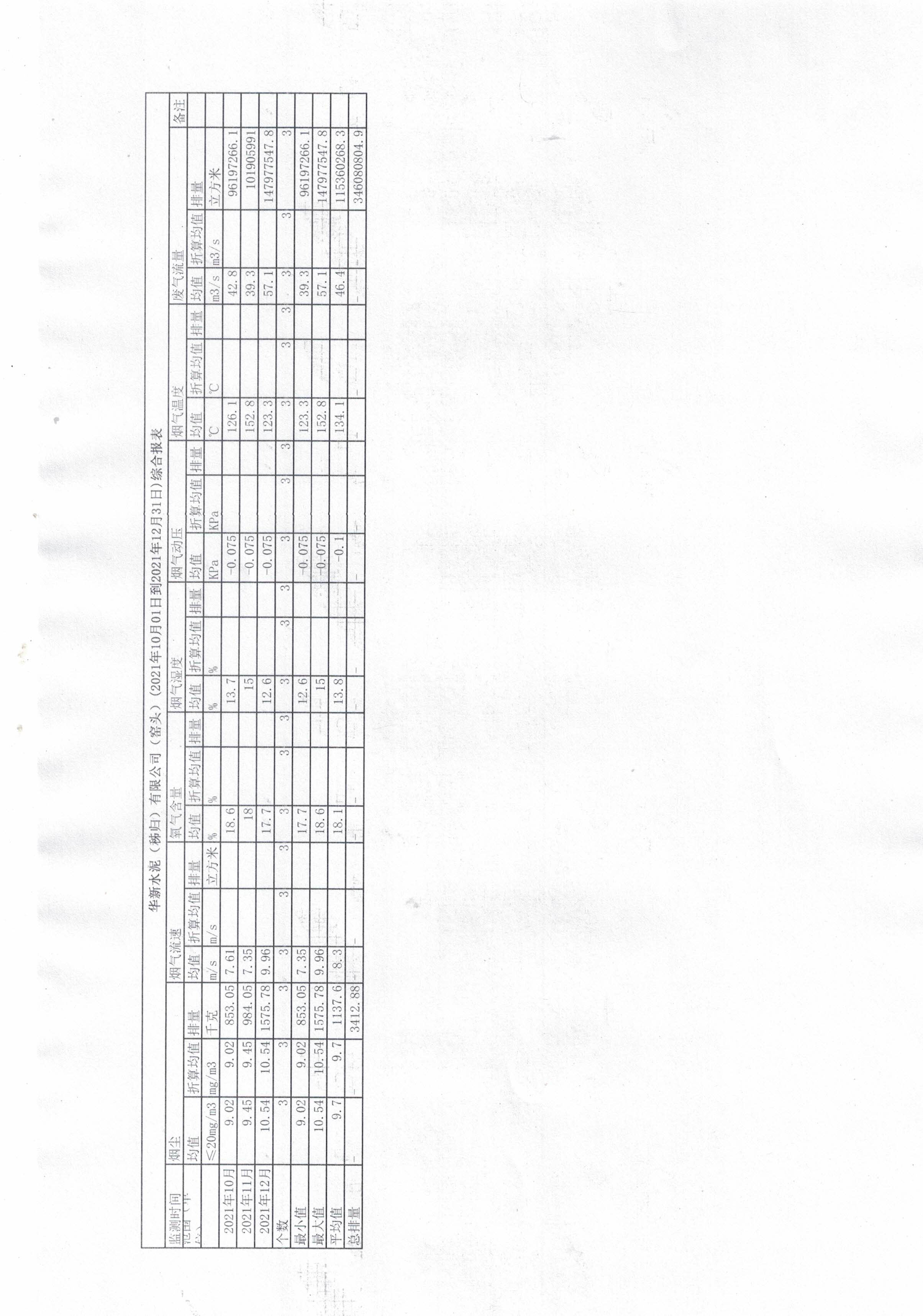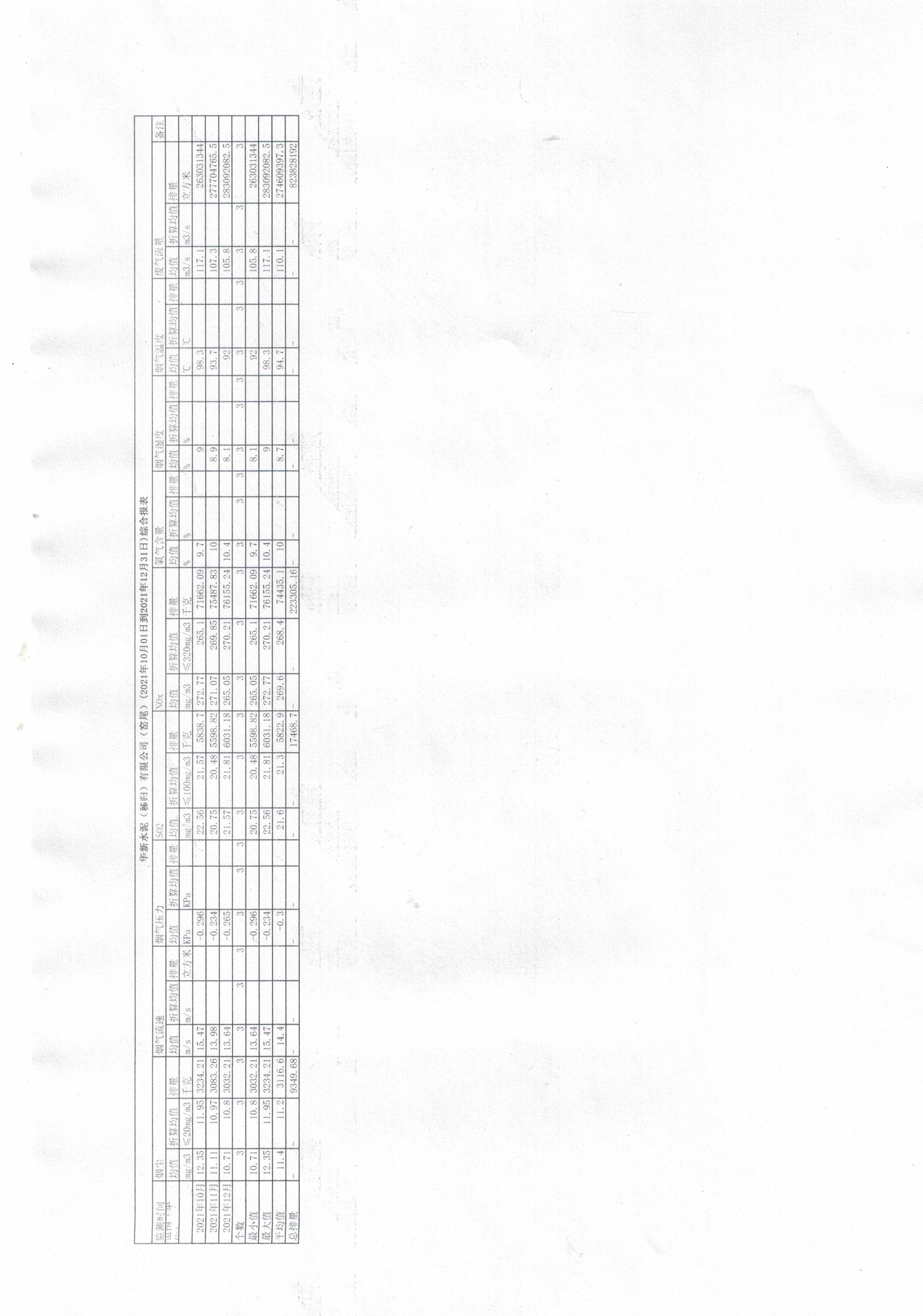 8.華新水泥(秭歸)有限公司-窯尾(2021年10月01日到2021年12月31日)綜合報(bào)表