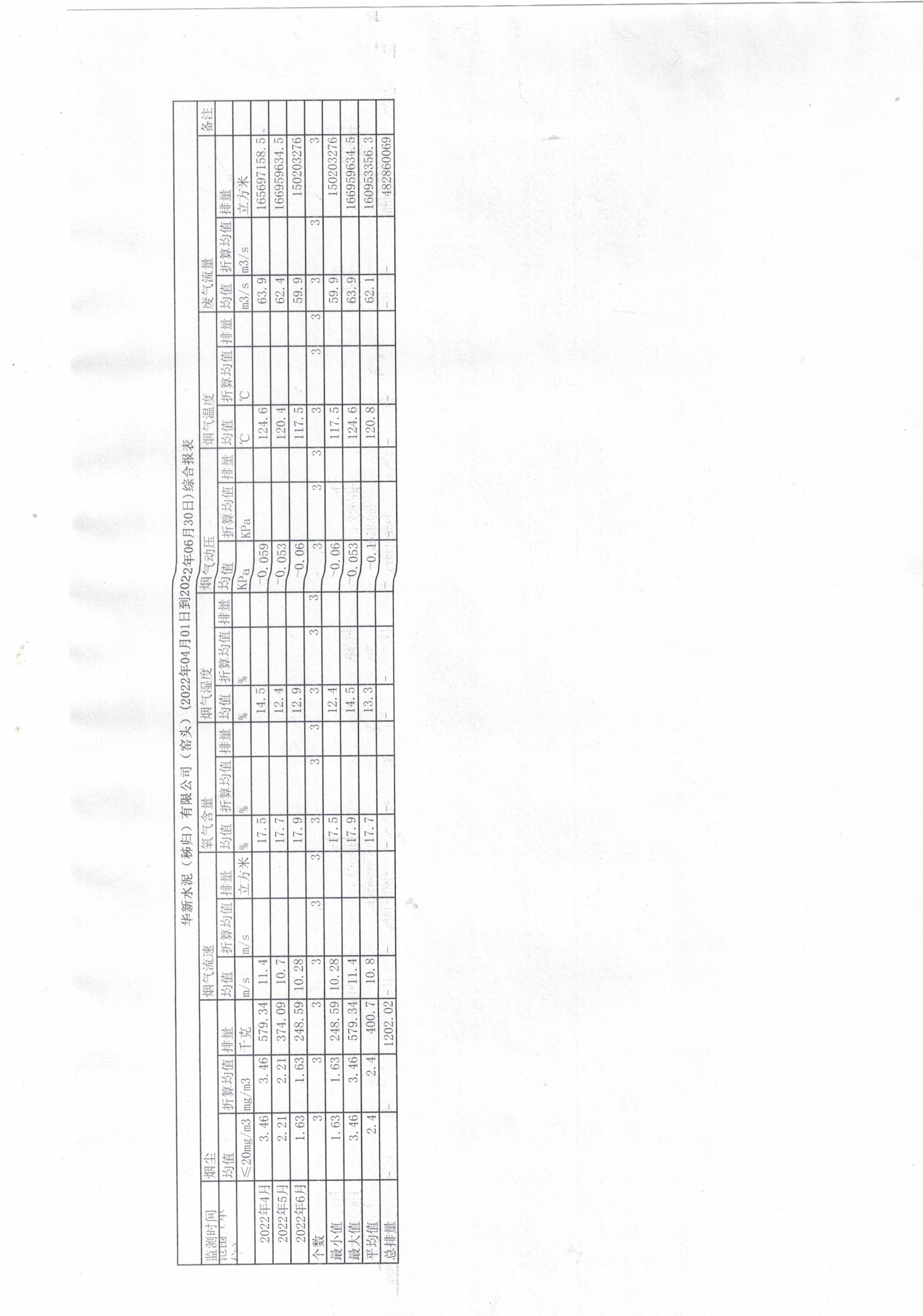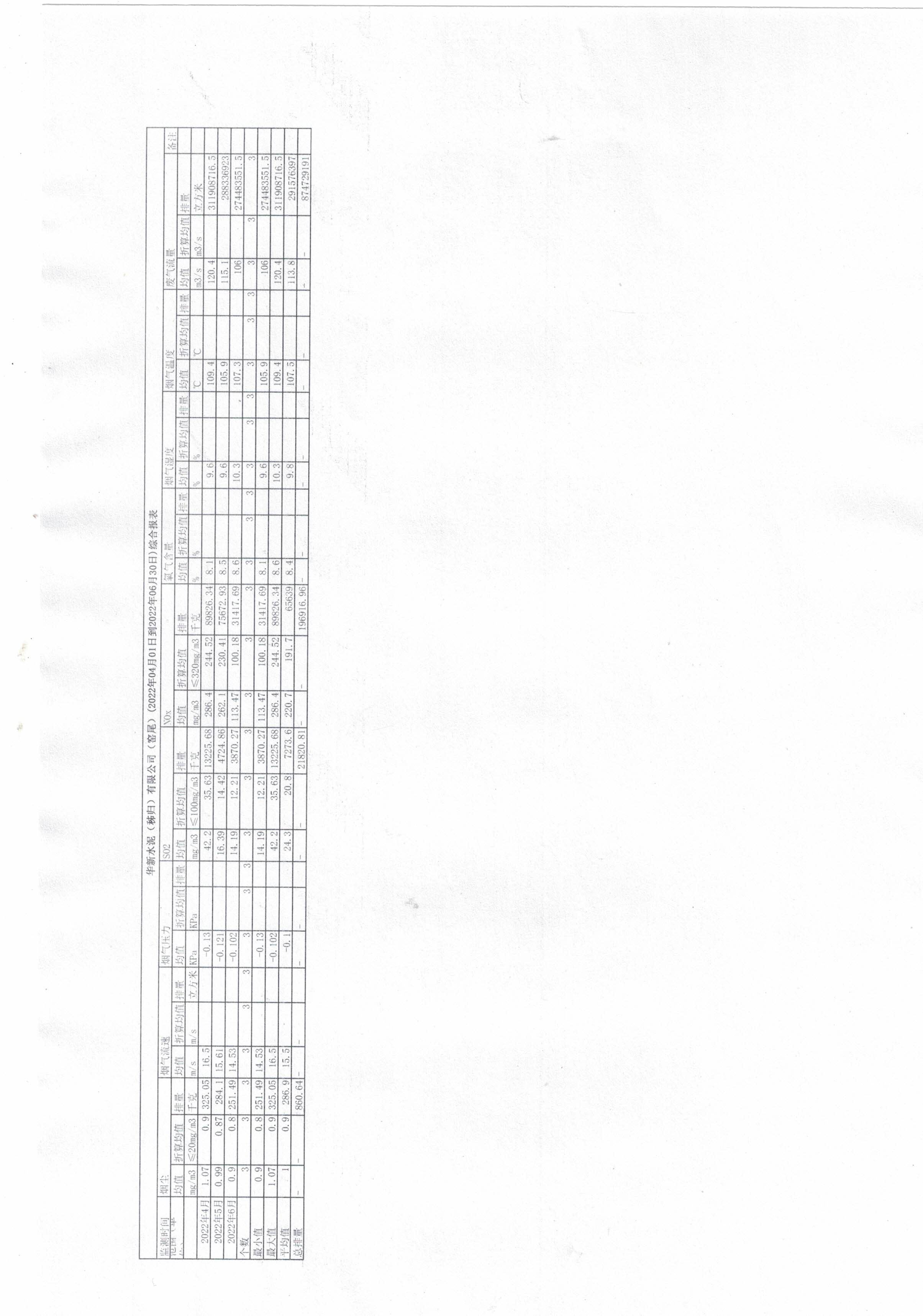 6.華新水泥(秭歸)有限公司-窯頭(2022年04月01日到2022年06月30日)綜合報(bào)表