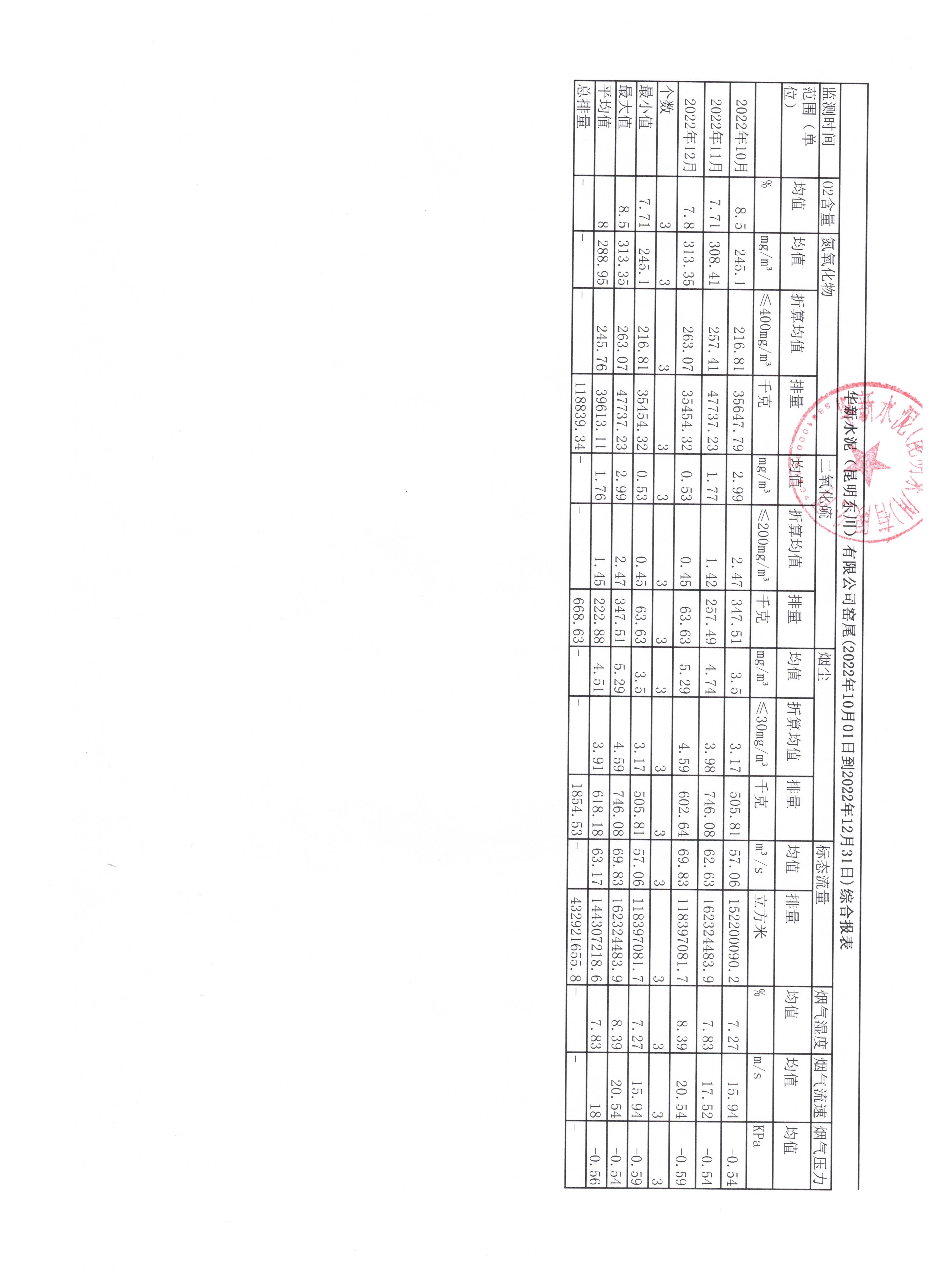 3、華新水泥(昆明東川)有限公司2022年第四季度窯頭煙氣在線監(jiān)測(cè)月平均值季報(bào)表
